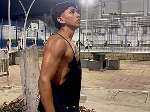 Mitch Seangers is back with another super hot scene and this time he teams up with Mr. Handjob Junior for some intense muscle play and pleasure. They start at an outdoor workout park where Mitch warms up and pumps his muscles. Once they move inside to the apartment, Mr. Handjob Junior takes it slow at first. He lays Mitch down in the hanging chair and begins exploring his hard, ripped body, massaging his oiled abs, feeling every defined muscle, and finally wrapping his hand around Mitch’s massive cock. You’ll enjoy plenty of close-up shots of his sculpted physique, cute face, and that impressive big dick. Mr. Handjob Junior teases his nipples, gently fingers his smooth tight hole, and even massages his firm round ass. After that, they move to the couch where the action gets even hotter, more cuddling, nipple play, and intense stroking of Mitch’s huge cock until he moans loudly and shoots a massive load all over his own abs and Mr. Handjob Junior’s hands. Exclusive only on EastBoys.com. Enjoy every second of this sexy latino twink session with Mitch Seangers!